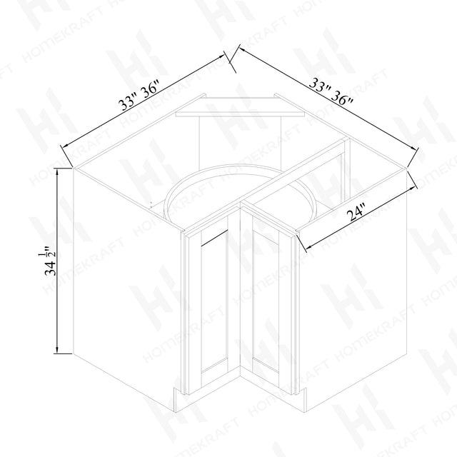 AMBER BIRCH SHAKER; LAZY SUSAN BASE CABINET; 33-36''W*24''D*34-1/2''H; TWO FULL HEIGHT FOLDING DOORS